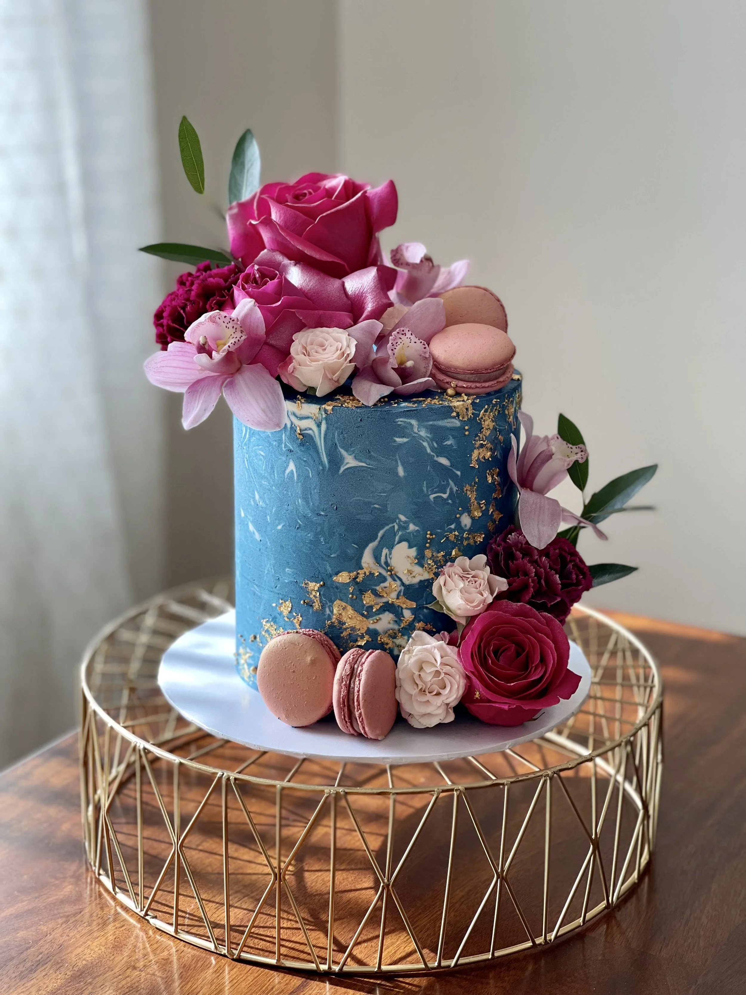 Do you have an event coming up and need a show stopping custom cake? Flowers, gold, marbling and acrylic toppers are all additional add ons. There is a nonrefundable 50% deposit and $150 minimum per order.